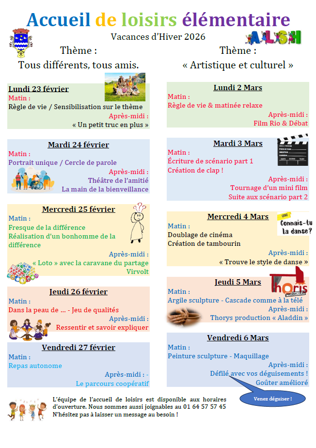 L’accueil extrascolaire est ouvert à chaque vacance scolaire (sauf les 3 premières semaines du mois d’août et les 2 semaines de Noël) prioritairement aux enfants de la commune.